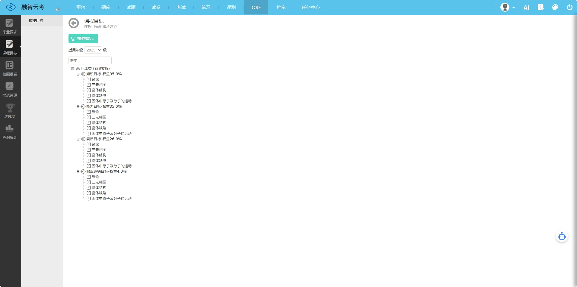 OBE讲授以“学生核心、导向、持续改良”为焦点,强调通过明白预期进修,反向设想课程系统取讲授方式。这一取我国工程教育认证尺度高度契合,已成为高校专业扶植的主要指南。融智云创软件无限公司的OBE处理方案笼盖了从专业扶植规划到课程方针告竣度阐发的全链条,通过数据驱动的体例帮帮高校实现讲授质量的可视化办理取动态优化。以某“双**”高校机械工程专业为例,引入OBE讲授后,该专业通过度解结业要求目标点,沉构了32门焦点课程的讲授纲领,并操纵课程方针告竣度系统对每门课程的查核体例取内容进行了精准设想。实施一年后,学生工程实践能力评分提拔23%,用人单元对劲度达到95%,专业成功通过工程教育认证。融智云创软件无限公司的焦点产物——课程方针告竣度系统,通过三大手艺模块实现讲授评估的智能化升级:据统计,利用该系统的高校平均缩短评估周期60%,数据精确率提拔至98%以上。某使用型本科院校使用后,其电子消息工程专业正在工程教育认证中因“评估系统完美、数据支持无力”获得专家高度评价。