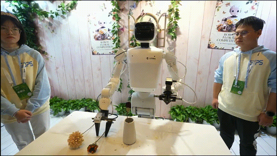 现场,将来进行时团队的机械人像一个「花艺师」,智能识别花束之后,按照指令完成做品的构想取创做。